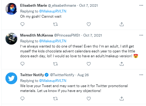 其中,发布有关礼品指南、美容套装、美容日历和季节性系列推文都是让人们兴奋的好方法。转发粉丝的穿搭和美妆图片也是另一种提高品牌影响力的方式。